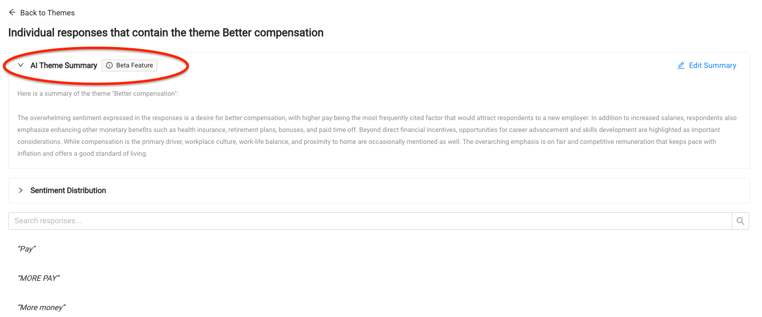 Customers can now auto-generate text-based summaries of themes identified by Fathom, making it delightfully easy to report on and action your open-ended insights.