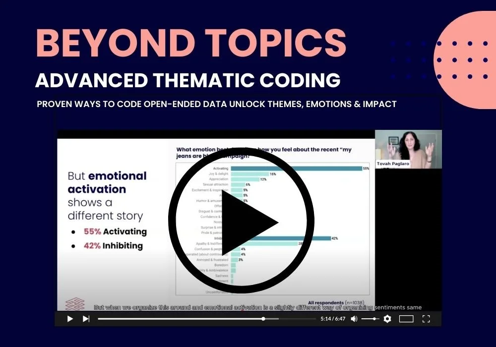 ✅ Designing for Analysis – Logic and conversational probe tips to set you up for fast, high-quality text analytics.Don’t miss this chance to sharpen a critical skill set and get more from every survey.